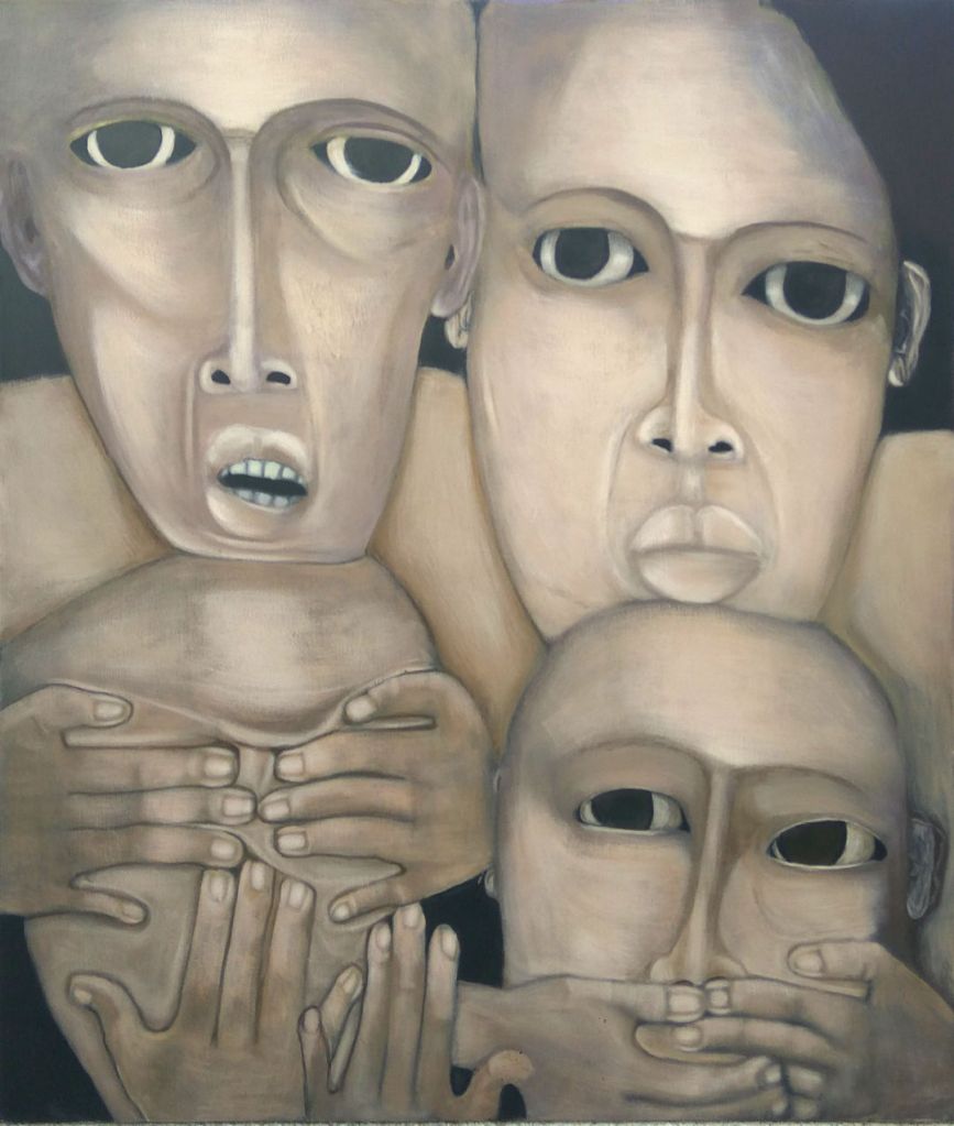 Non vedo, non sento, non parlo. Cm 150 x 180. Acrilico su tela.